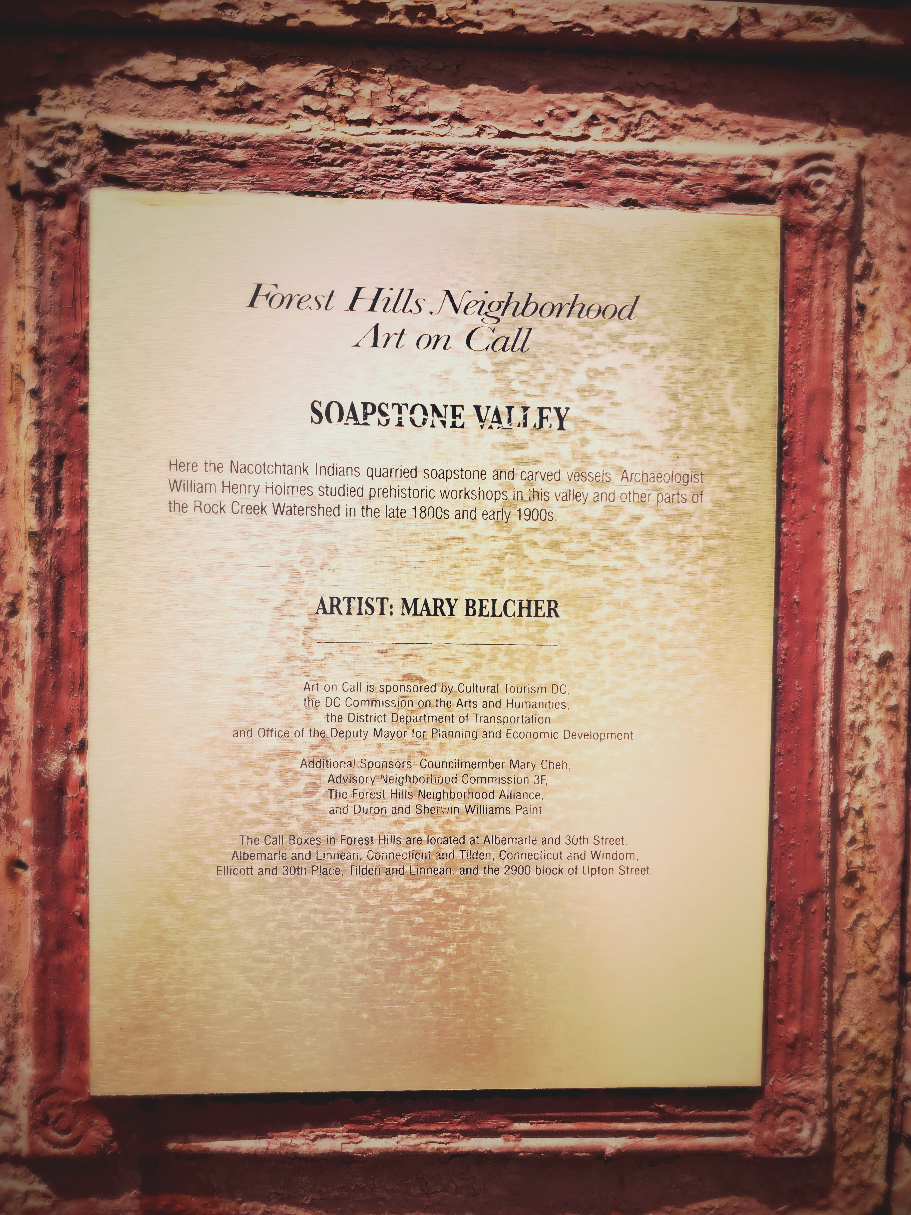 In an earlier post, we discussed how, many of the old call boxes scattered throughout the District have been made into works of art. Here’s a beautiful example. Often, the name of the work and artist are on the back.
