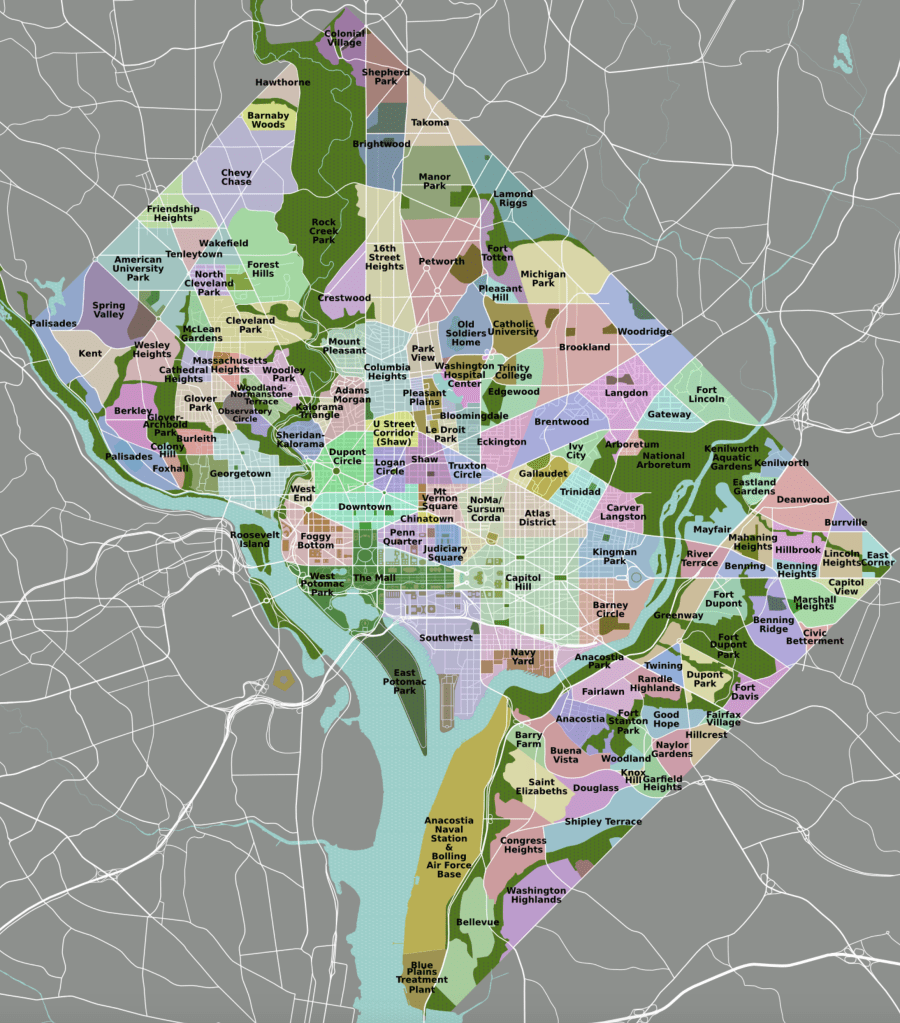 After watching the documentary ‘The World Before Your Feet’ about Matt Green, who is walking every street in New York City’s five boroughs, we decided to take on the far less daunting task of walking every street in Washington D.C.’s Ward 3, where we live. The District of Columbia is divided into eight Wards. Ward 3 comprises a large part of the northwest quadrant of the District and consists of about twenty neighborhoods.