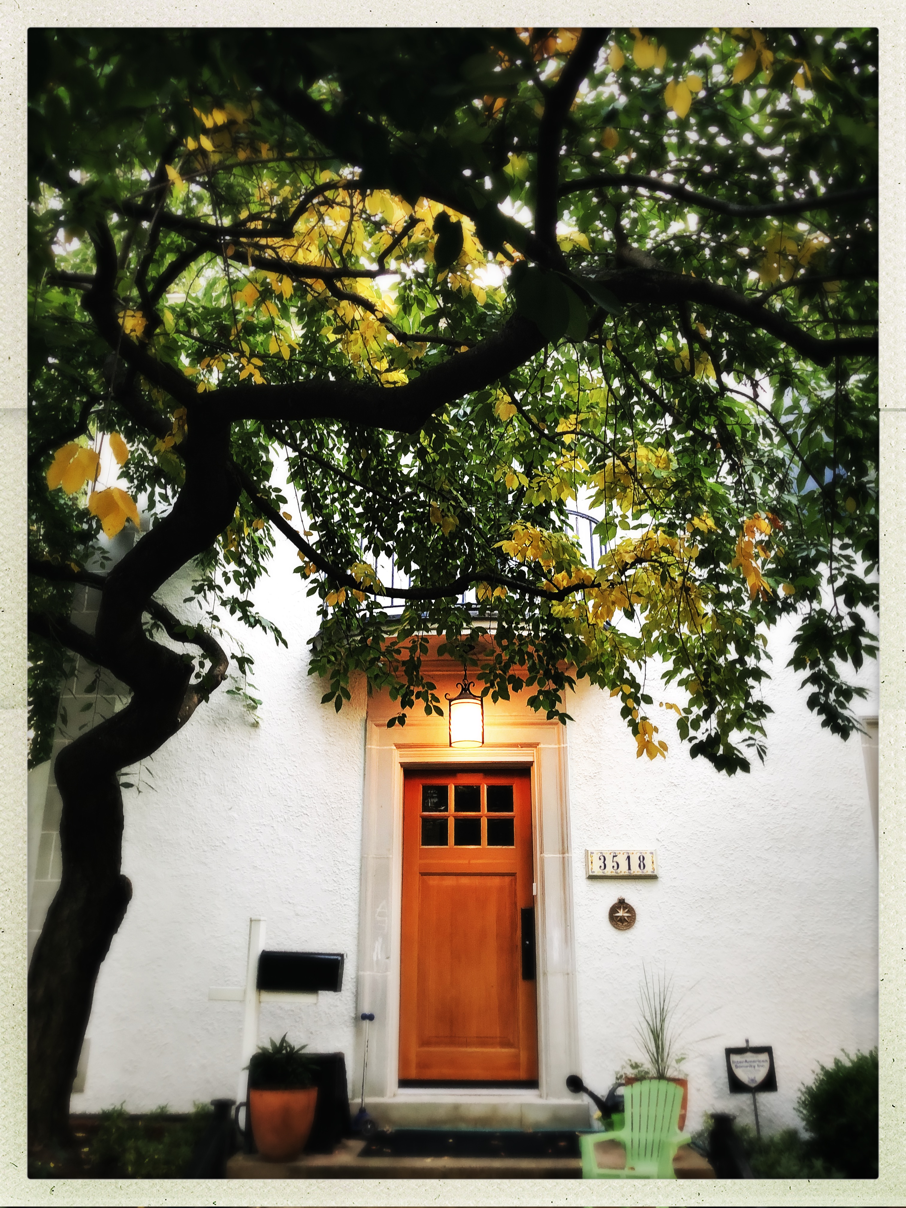 Dropping back into the neighborhood streets, we liked this house, it’s front door framed by an overhanging tree.