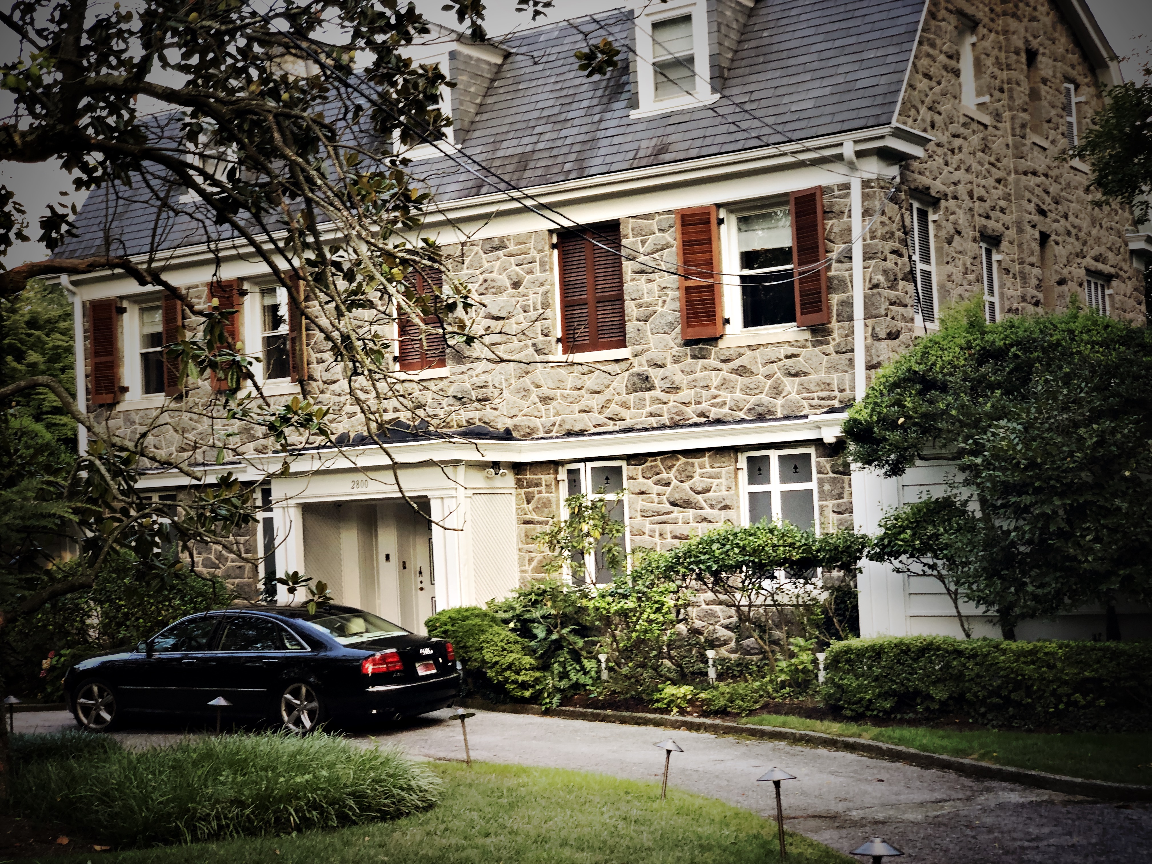 Further up Wisconsin Avenue we passed by Sidwell Friends School. Sidwell is a well-regarded private school that has educated the children of many prominent politicians, including a number of Presidents. Both Obama daughters attended the school, as did Chelsea Clinton. It is a quaker school, which we guess, is reflected in the low key school sign in the photo below. The house, itself, known as the Highlands, was built between 1817 and 1827 by the Nourse family, prominent Washingtonians whose friends included Dolly Madison and Thomas Jefferson. Prior to becoming administrative offices for the school, the house was home of a number of Washington high flyers, including Admiral Grayson, President Wilson’s personal doctor, and Allen Dulles, the first Director of the CIA.