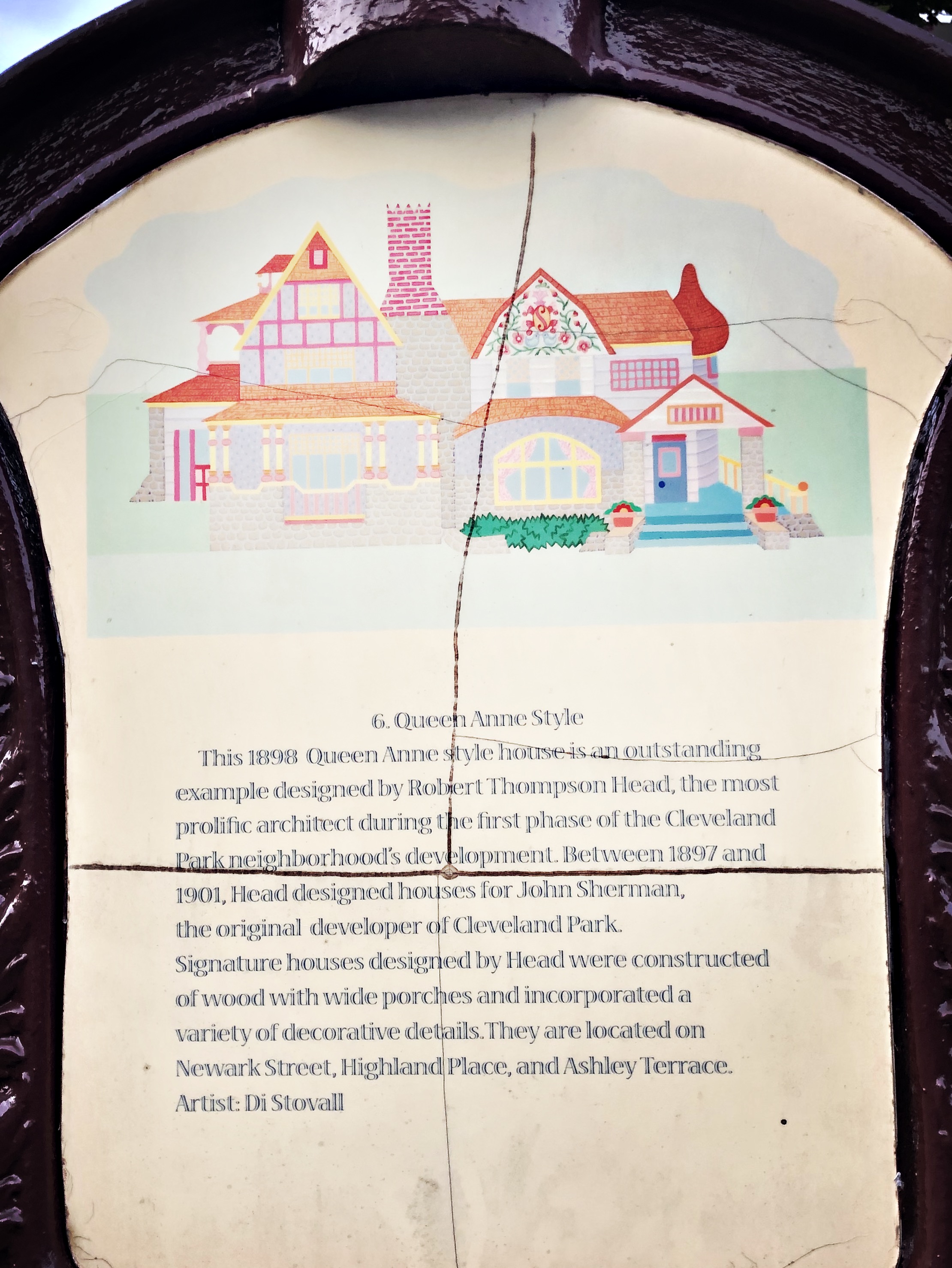 We came across this call box which gave a brief description of the Queen Anne architectural style that was popular at the time that Cleveland park was being developed. It includes a whimsical painting of the house that stands behind it.