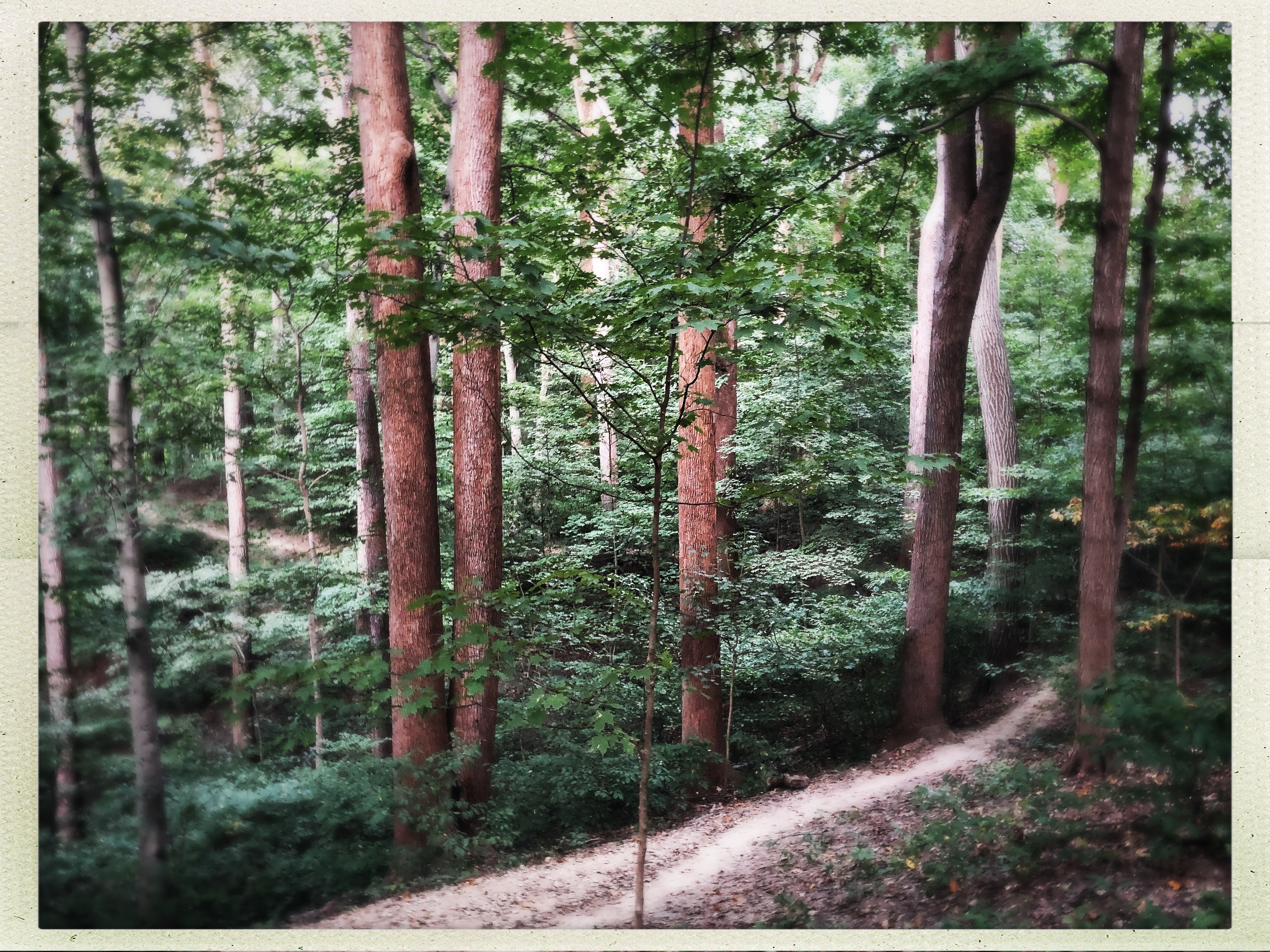 One of the things that has surprised us during our walks is how easy it is to find yourself in deep woods. You can easily imagine that you are miles outside the city in the forest and not just off a main road.