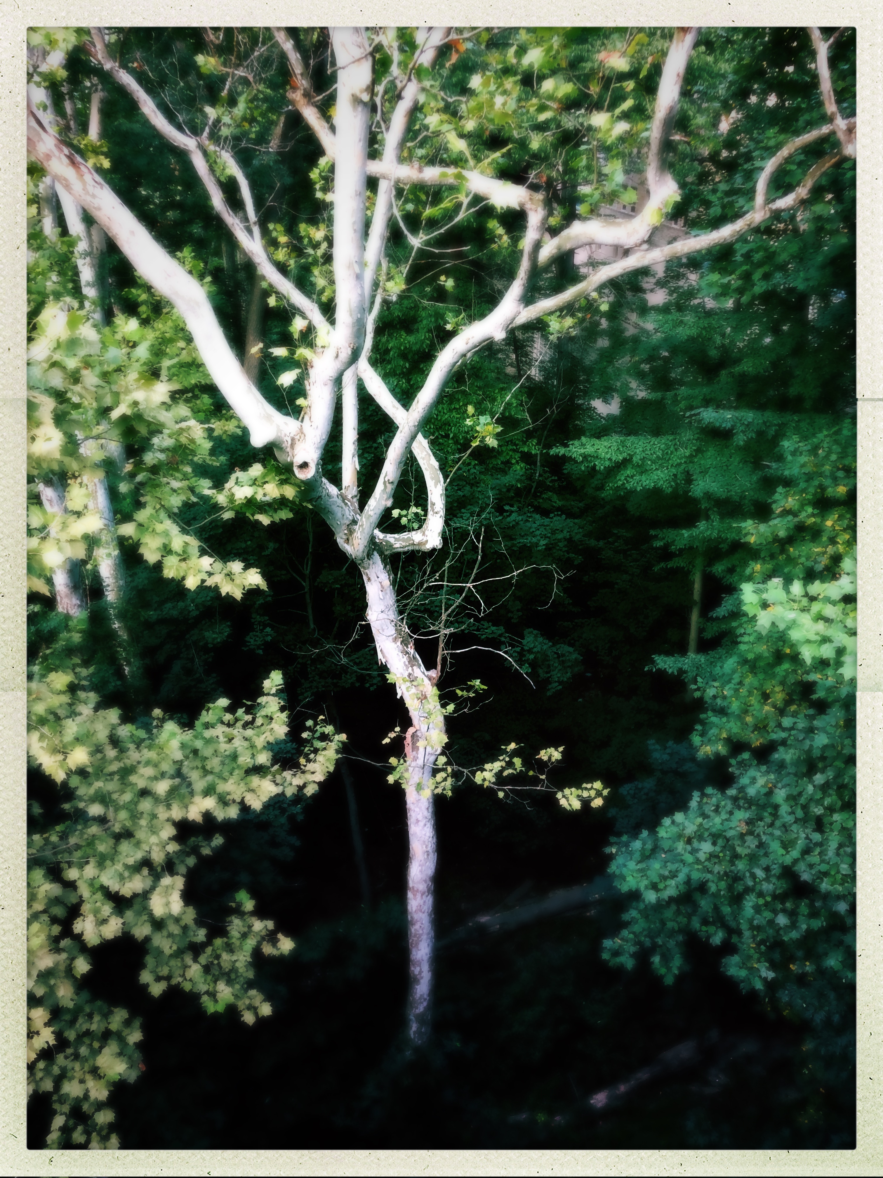 Looking down from the bridge we noticed these two trees that were negative images of each other.