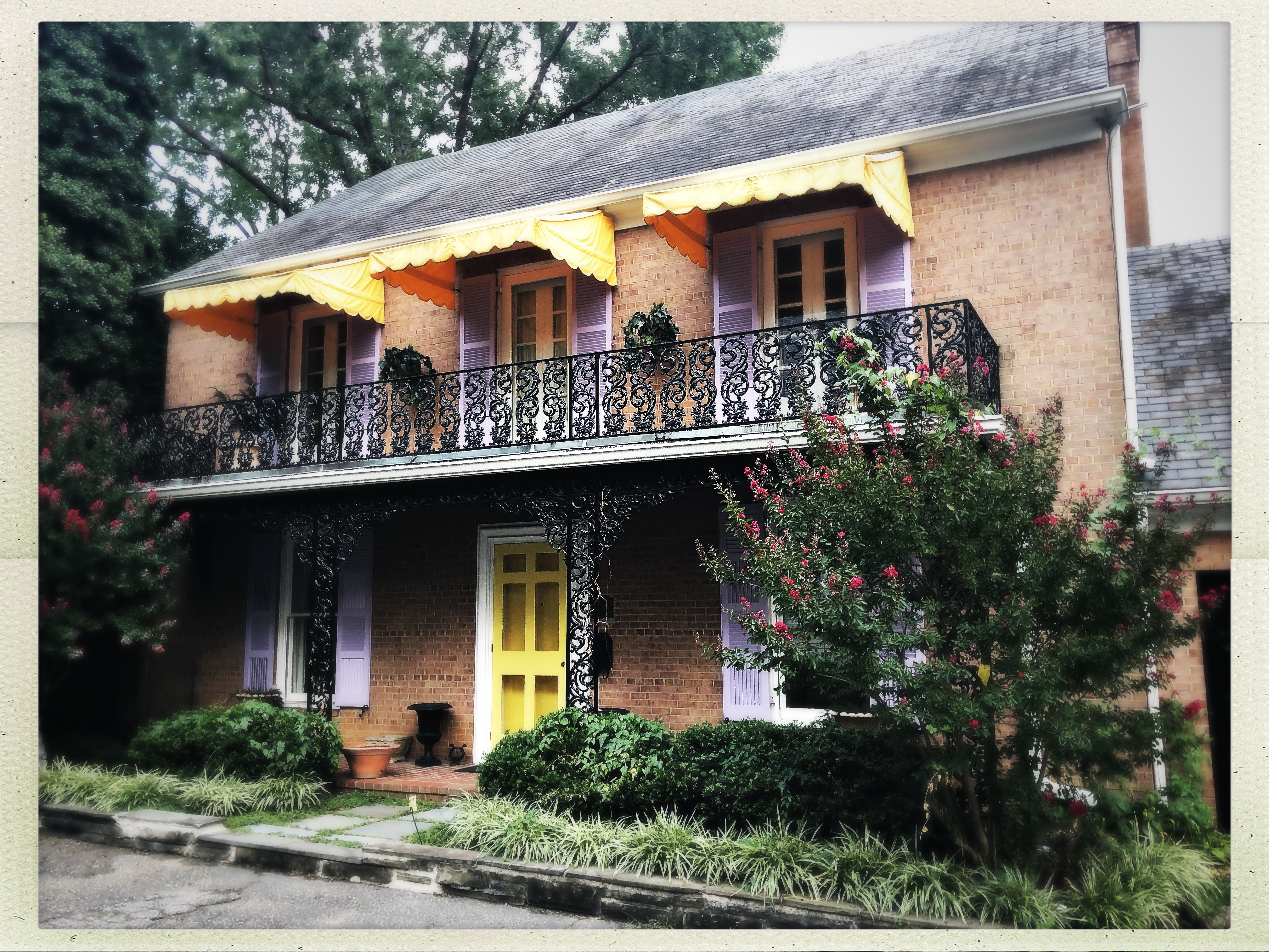 Back on the side streets, we were intrigued by this house with it interesting yellow and purple color scheme. The intricate iron work was reminiscent of New Orleans.