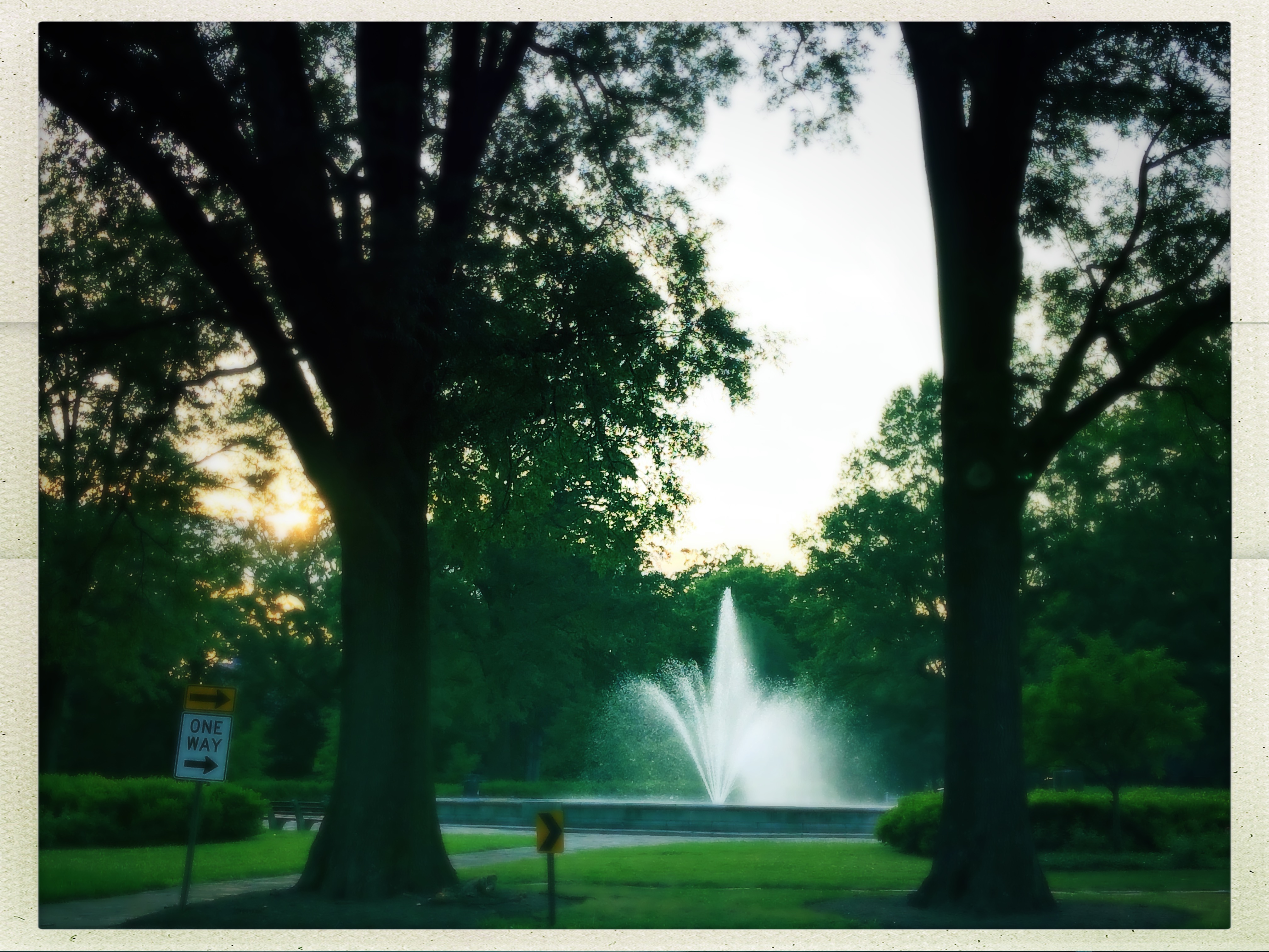 Chevy Chase Circle sits on the border between the District and Maryland. Two major roads, Connecticut Avenue and Western Avenue, cross it, along with a couple of smaller streets, so it is always busy. In the middle of the Circle is a fountain named for Francis Griffith Newlands, a congressman who was a leading figure in the development of upper northwest DC. We’ve always been too scared to brave the traffic flowing around the Circle to get a closer look, but it looks beautiful from a distance.