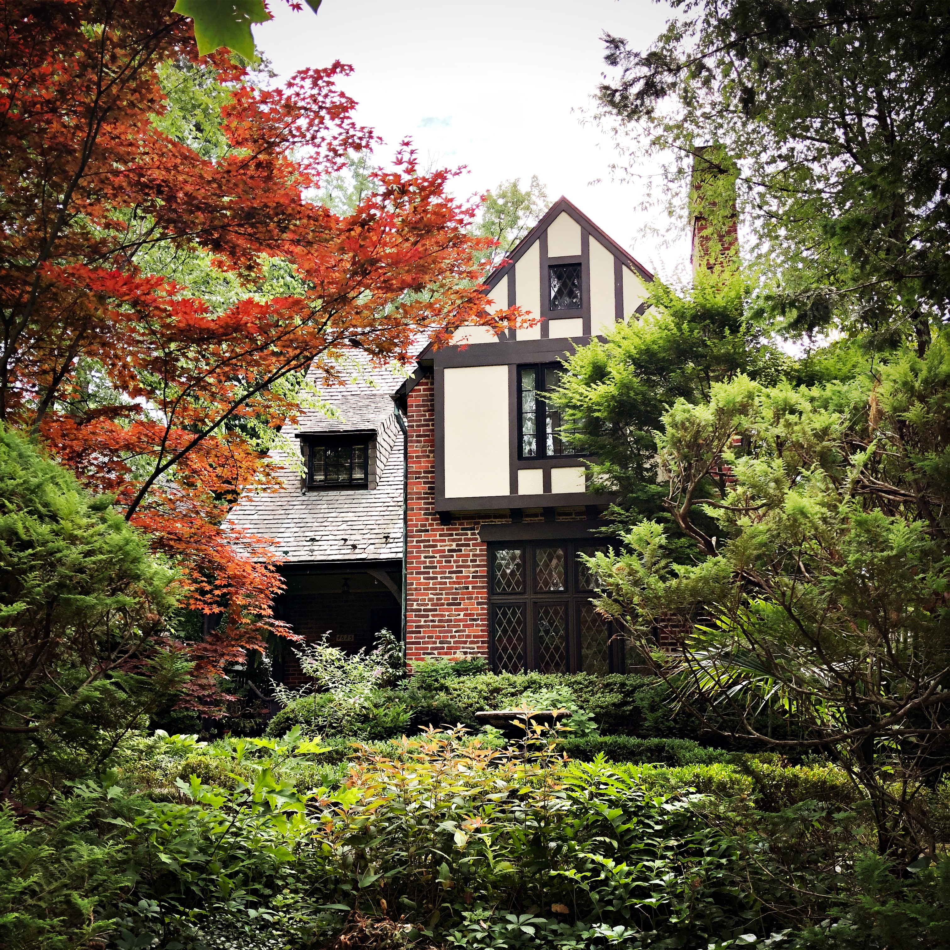Another of the little free libraries dotted about the neighborhood.We were both taken by this charming house as we walked by. Something about the green and white color scheme brought back memories of traveling through England.
