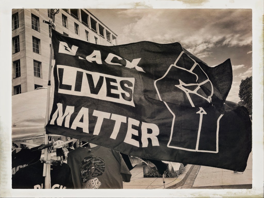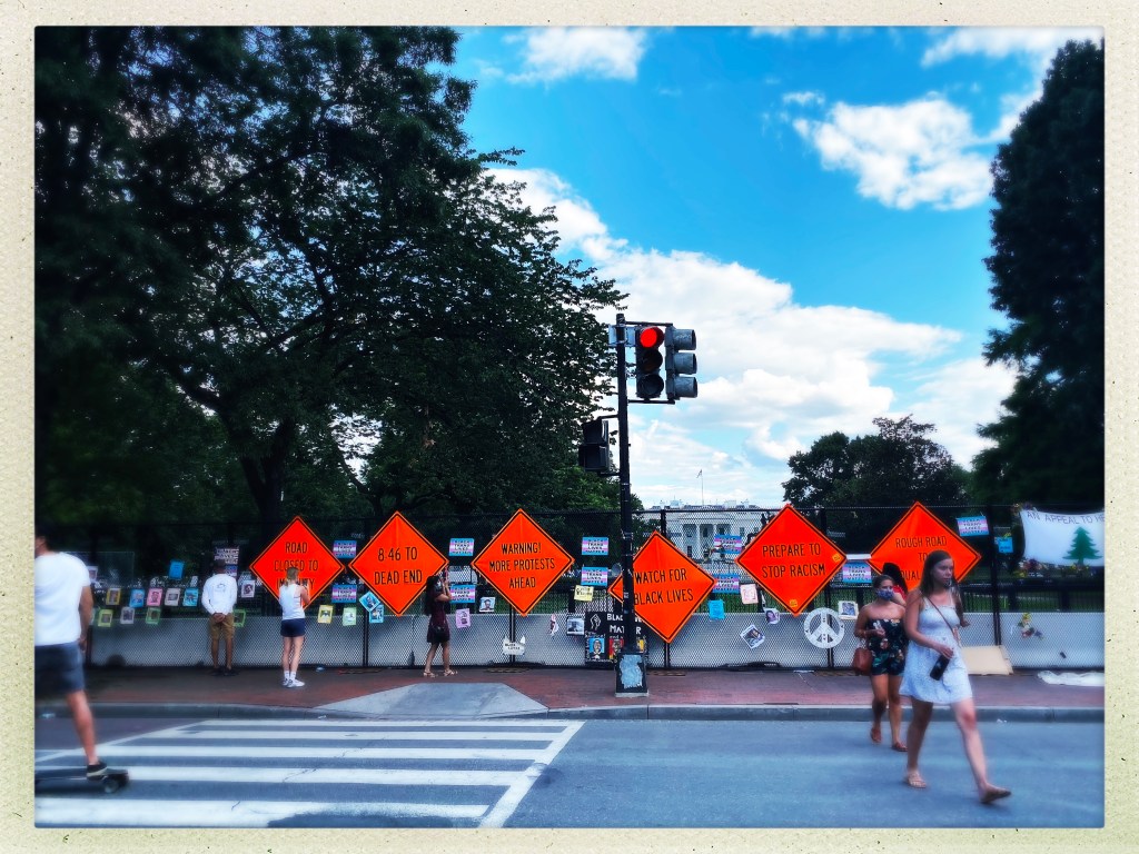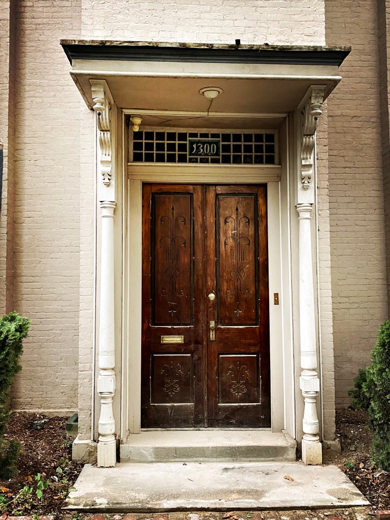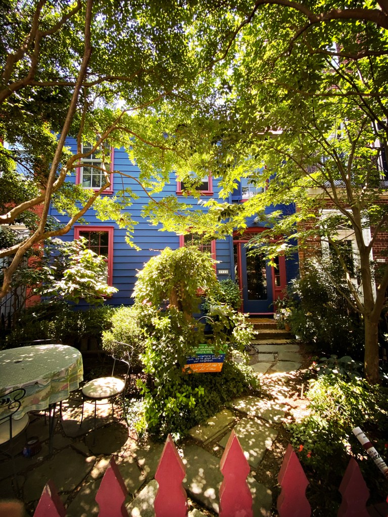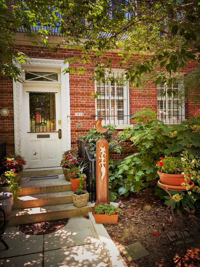We liked the way that the residents of these two row houses appeared to have coordinated their curb appeal. They shared a front yard, street lamp and even “No Justice No Peace” sign.