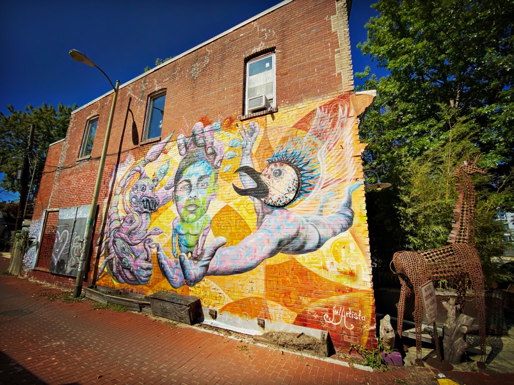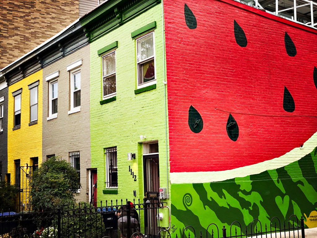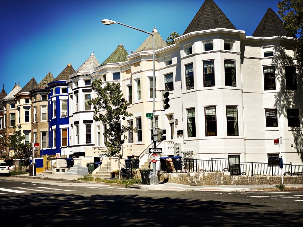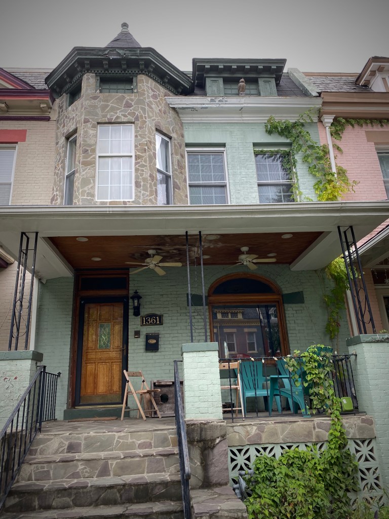 On a grey day, we continued to explore Columbia Heights and neighboring Park View. The two areas are rapidly gentrifying. Consequently a large number of the small apartment buildings and row houses have been recently renovated. Many have been newly painted, often with bright colors. We decided to make green row houses (not eco friendly houses but those actually painted green) our theme of the day.