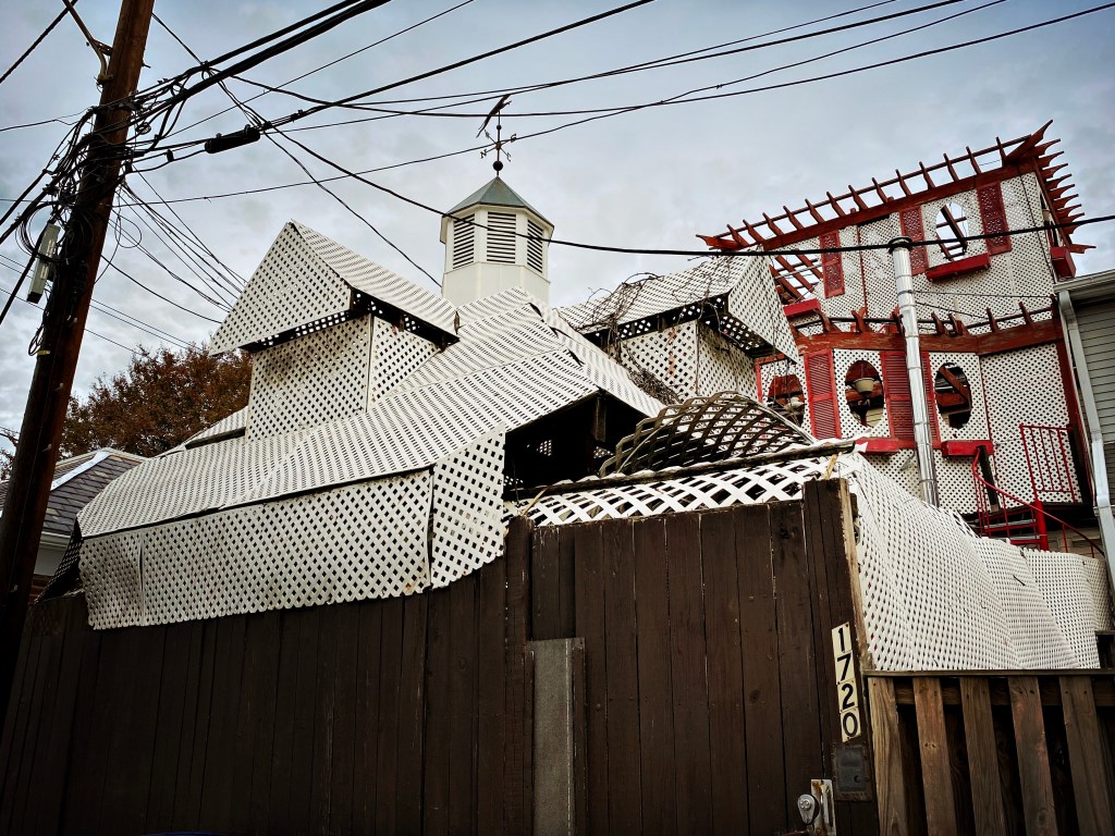 This place caught our eye, with its purple door and windows. It was originally built in 1902 as an art studio for the artist Edward Lind Morse. If you look at the large hinges on the front door, you can make out the monogram ELM. The house was converted into a residence in 1910 and was at one stage owned by James Roosevelt, the eldest son of Franklin and Eleanor, who lived next door.
